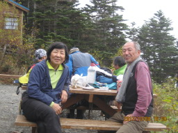 | 無事に下山できたことでくつろいでいるところ。 | |