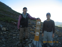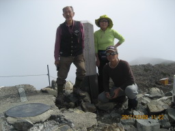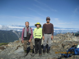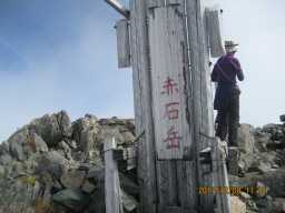 | 赤石岳でかなり休憩し、そろそろ下山の支度 をするため頂上での写真をとる。 |
