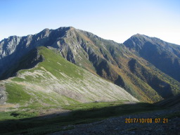 | 小屋の方向から赤石岳頂上を望む。 | |