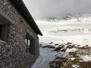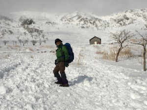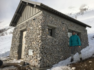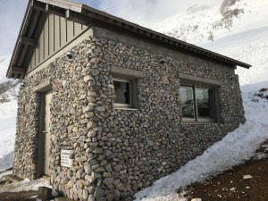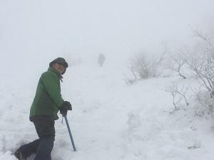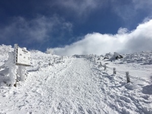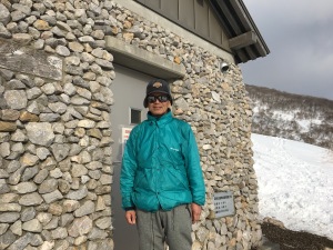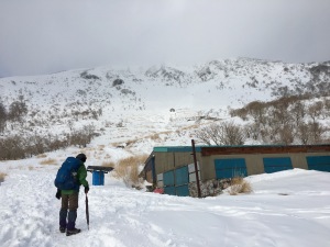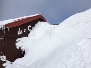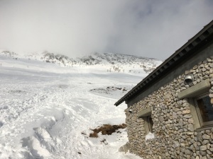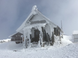 | 頂上の小屋の様子。 雪の吹き曝しのせいか雪庇 の山が雪だるま式に形成さ れ高くなってしまう。 |