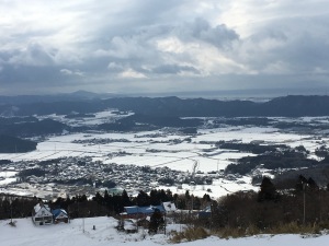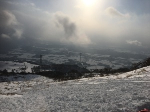 | 12:55 1合目を出発。 写真は、2合目に向かう最中に後ろを 振り向き撮った。 白と黒のコントラストがなんともきれい だった。 |