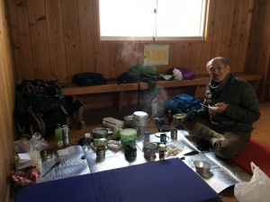 | 15:25 避難小屋に到着。 3合目までは遠く、3合目から6合目 が近く感じる。 避難小屋は我々2人しか利用せず 独占状態であった。 こんないい小屋があるのに何故利用 しないのか疑問である。うまく利用す ることですばらしい時間を過ごせるの である。使わない手はないというのが 印象である。 |