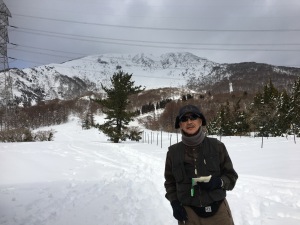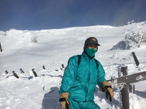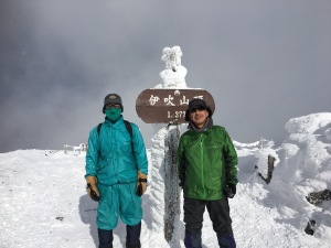 | 頂上での先輩とのツ-ショット。 頂上はあまりに寒く、10分以上 は滞在できない状態。 10:20 頂上を出発。下山する。 |
