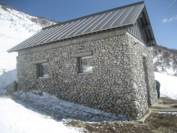 | この小屋は泊まりで一度使ってみたい と思っている小屋。中で火が使えない ということだが・・・・。関係者としては禁 止事項を書くのは当たり前とは思うが。 |