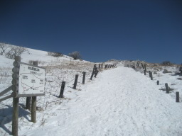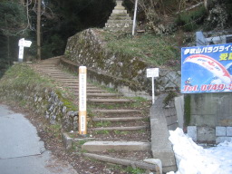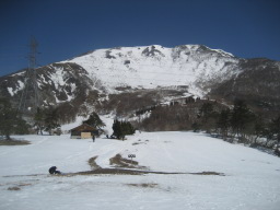 | 1合目に9:05に着。雪をほとんど ない状態。民家の親父が3合目から 雪があると言っていた。 ちょっと休憩し9:15に出発する。 |