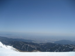 | あまりに快晴であったためすご下山 するのはもったいないと思い、頂上の まわりを1周し美濃平野、名古屋、羽島 方面の写真をとる。なんともいえぬ眺め こんなに見えたのはこれまで2回目だっ たと記憶しているが、1回目のときは写 真がなかった。 |
