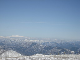 | 白山がきれい。今年は北陸方面に 雪が多かったせいか、御岳に比べ かなり白くなっているのがめだつ。 |