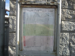 | 8:00に登山口へ着く。車を民家に止めた。 私と同じように考えた登山者なのか2台ほど 車が止まっていた。神社の前にバスが停車 していた。これから電車、バスの利用もあり と思い、バスの時刻表を撮る。 |