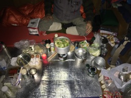 | 避難小屋での食事はすき焼き 沼本さんに全部用意していただいた |