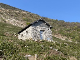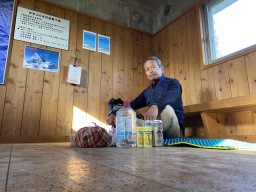 | 15:30 5合目着 8名程休憩中であった。 スタートから3時間かかっていることになる 16:00 出発 今日は6合目で泊まることにする。 こんないい小屋があるのに何故に使う登山者 すくないのであろうか。 |