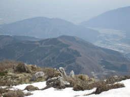 | 頂上から、養老山方面。 頂上には、ジャスト1時間滞在する。 1:00 頂上を出発。 1:25 8合目通過。 1:45 8合目通過。 1:50 避難小屋に入り、昼寝をする。 1時間寝込んだようである。 2:50 避難小屋出発する。 2:55 5合目通過。 3:30 2合目通過。 3:37 1合目通過。 |