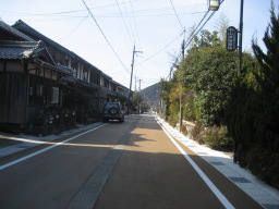 | ここは柏原宿の説明がしてある。この看板の後ろにある家 は(見えにくいが)、映画監督の吉村公三郎の生家。父親は 戦後の広島市長。 |