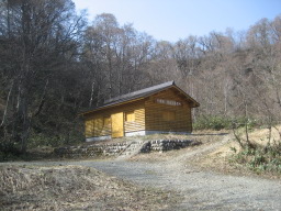 | これが、小屋。歩き始めて約13km。4時間 かかった。誰一人として会わなかった。15km の圏内(円)にいるのは自分一人ということか。 かなり足の先が痛い。 |