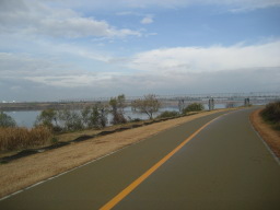 | 自宅から、濃尾大橋を渡り、堤防の下の木曽川沿いを南へ 歩くと、舗装してあった。サイクリングや散歩用に整備して あった。しばらくこのル−トを歩かないうちにかわったものだ。 |