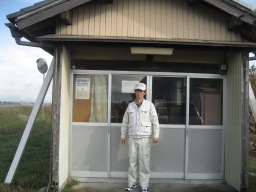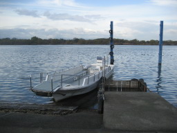| 西中野の渡し船場につく。ここから堤防にあがると、羽島学園 、老人福祉センタ−がある。 |