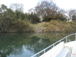 | 川の反対側に着いた。かなりカ−ブしながらしながら接岸した が、船頭曰く「川の水位がそれぞれ違うため深いル−トを通っ てる」という。 |