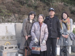 | お墓の前で。 左から、義姉、母、本人、姪。 |