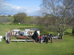 | 歩いてきた堤防を振り向くといま 歩いてきた塔が大きく高く見える。 |
